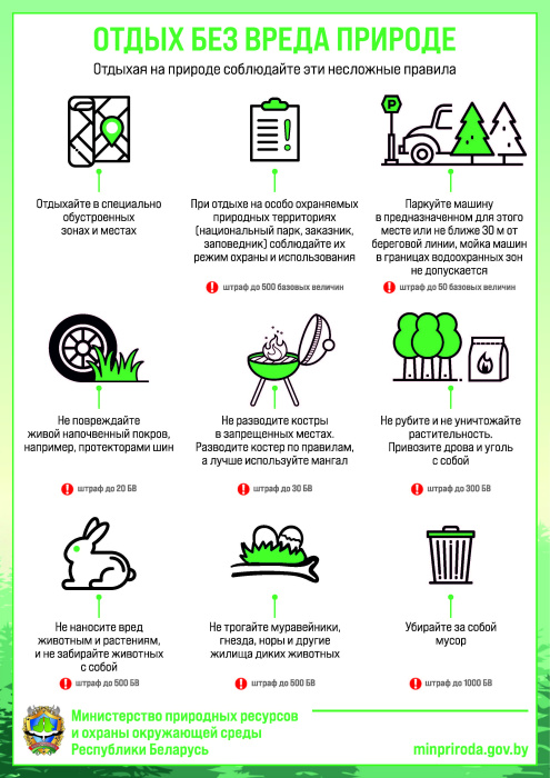 Цель мероприятий — популяризировать бережное отношение беларусов к природной среде. Для этого в министерстве разработали памятку ответственного отдыхающего.