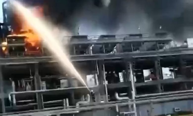 По его словам, согласно одной из версий, пожар возник «в результате атаки беспилотников по техническим установкам завода».
