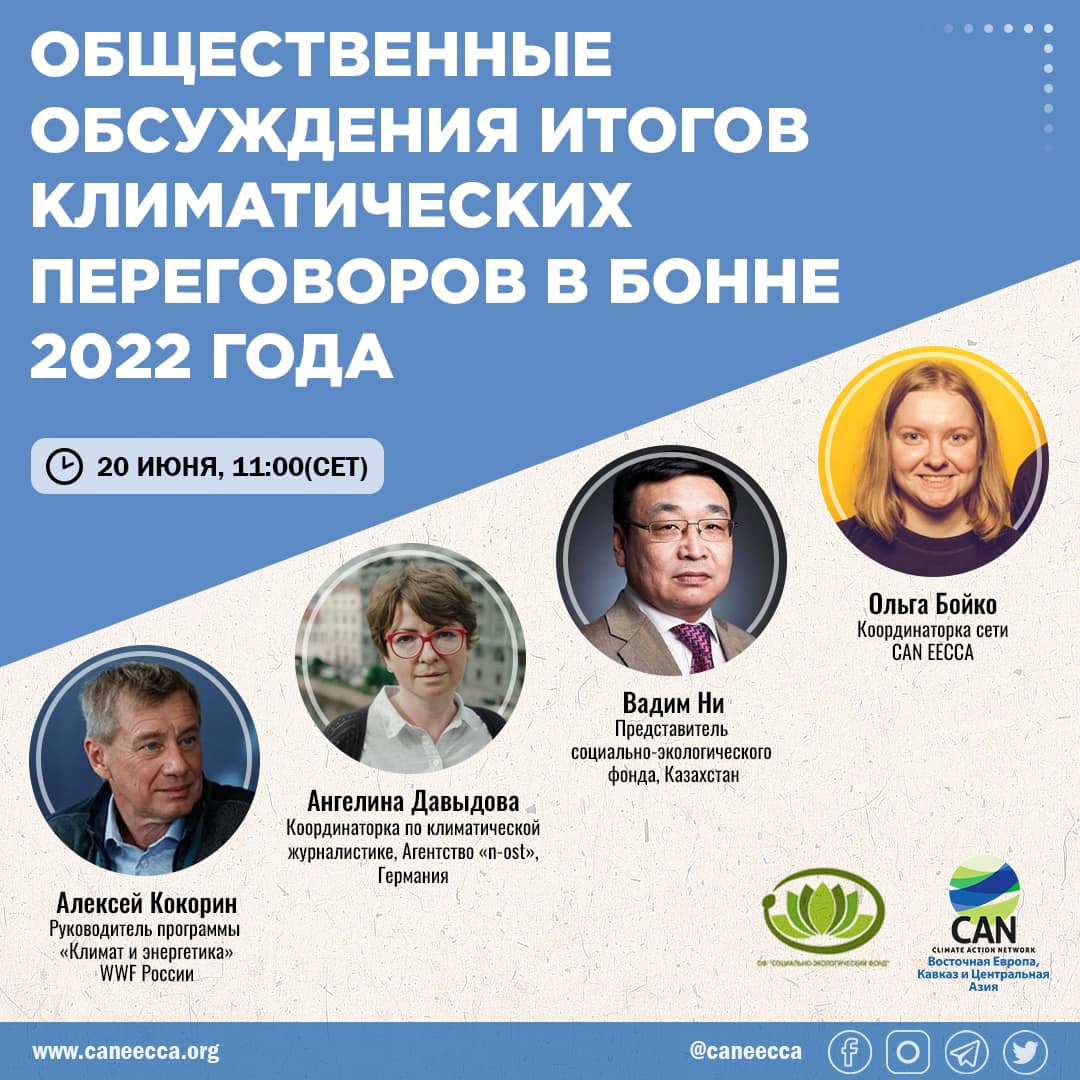 С целью обновить глобальную климатическую повестку и рассказать о результатах конференции в Бонне эксперты собрались на встрече, которую организовал CAN ВЕКЦА совместно с «Социально-экологическим фондом» (Казахстан). Среди выступавших были Алексей Кокорин, директор программы «климат и энергетика» WWF Россия, а также климатическая журналистка Ангелина Давыдова.