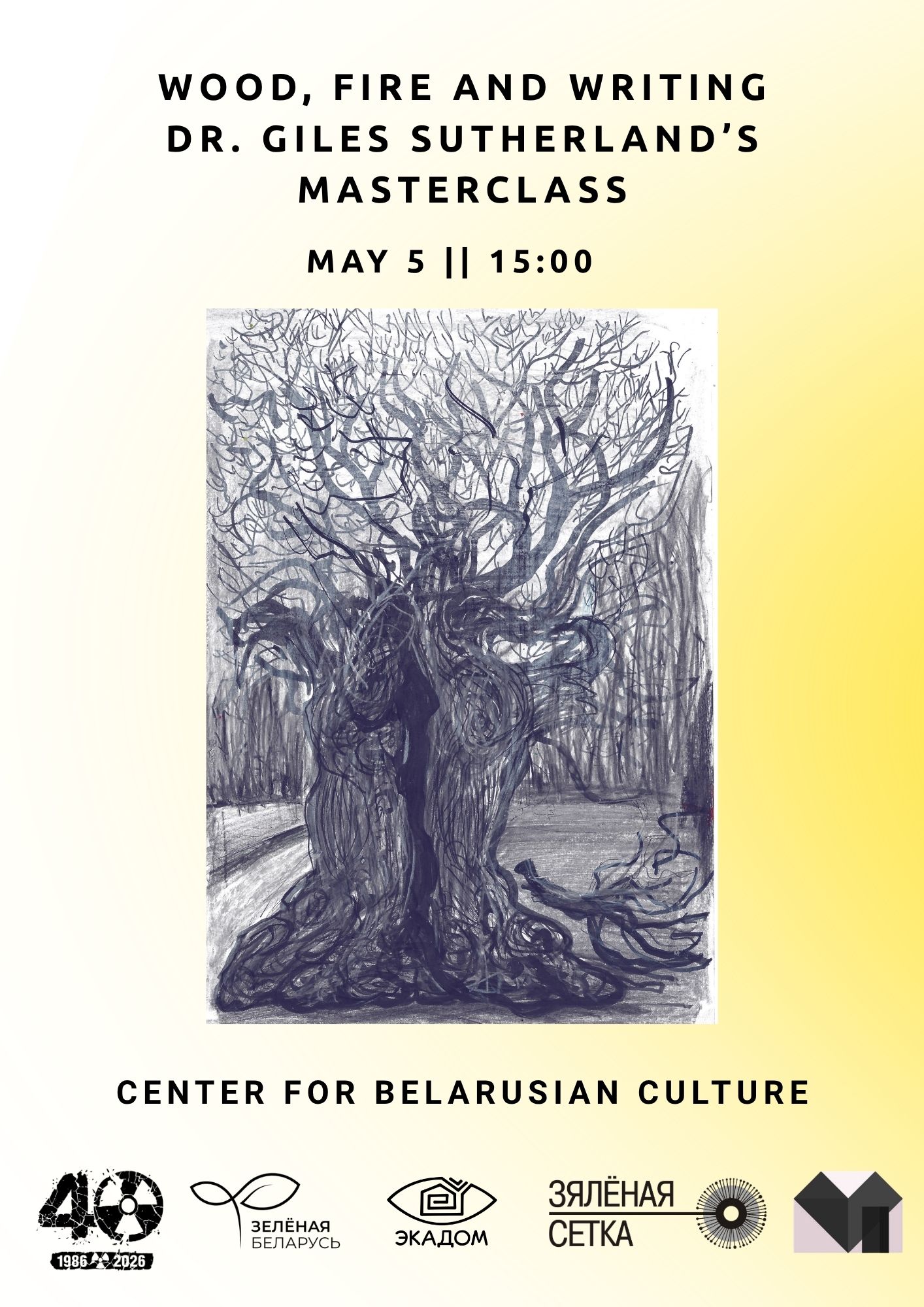 Запрашаем на творчы майстар-класс ад шатландскага прафесара, паэта і арт-крытыка доктара Джайлса Сазэрлэнда. Праграма «Wood, Fire and Writing» спалучае мастацкую практыку з экалагічнай рэфлексіяй.
