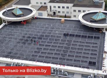 На крыше минского паркинга бизнес-центра «Титан» устанавливают солнечные батареи